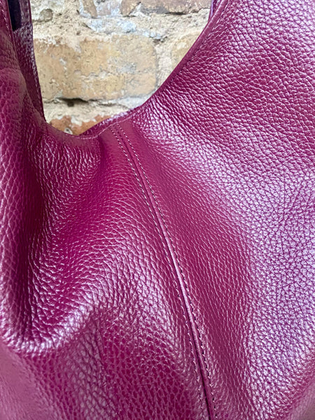 Tote leather bag in burgundy with zipper. Natural genuine leather. NOT LINED. This style is closed with a zipper. Wine red leather shopper.