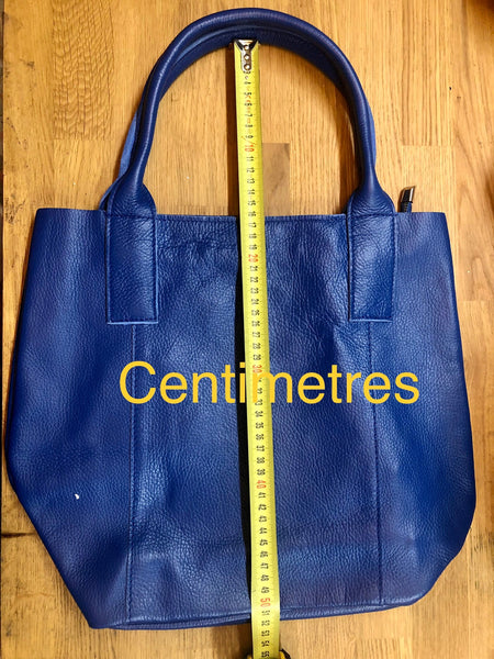 Soft peach pink leather shopper. Carry all strong leather bag. Fuchsia laptop or book bag. The inside of the bag is not lined. We added a small leather pouch attached by a chain. Zipper at the top. Excellent quality soft but strong genuine leather.