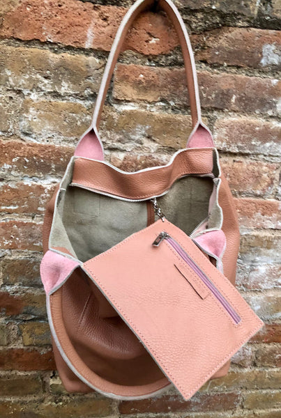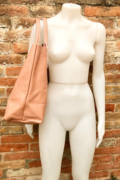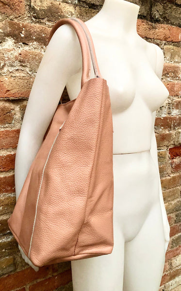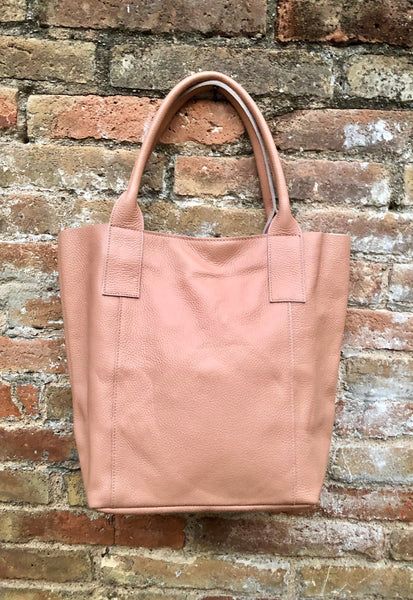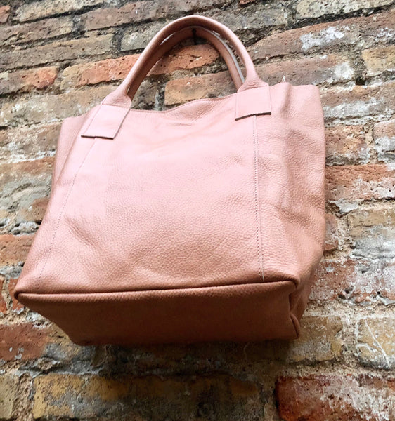 Large tote leather bag in PINK. Shopper bag. pink natural GENUINE leather. Large enough for books or a laptop, tablet, cosmetics bag etc.