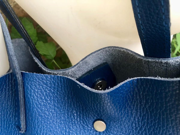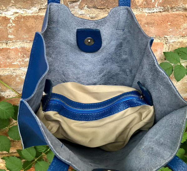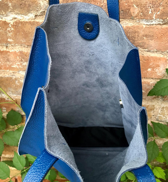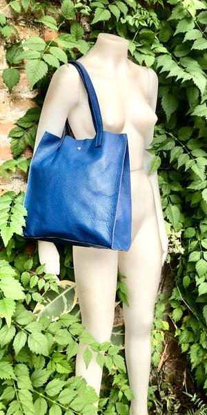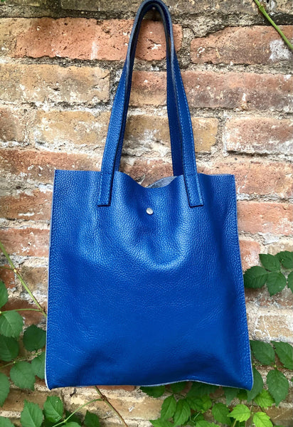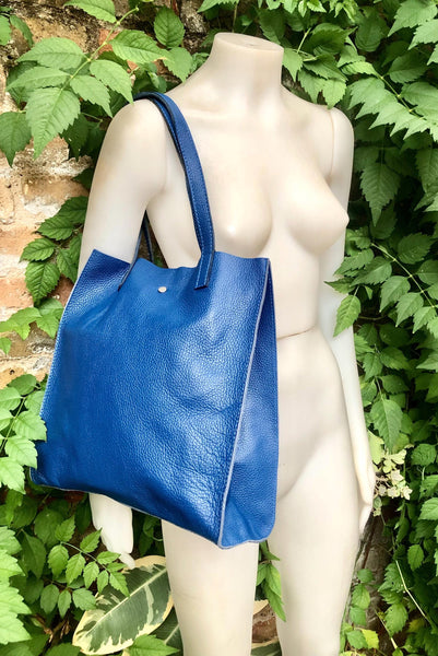 Tote leather bag in cobalt blue. Soft natural genuine leather shopper bag. Dark royal blue leather shoulder bag. Blue leather purse.