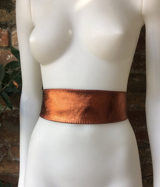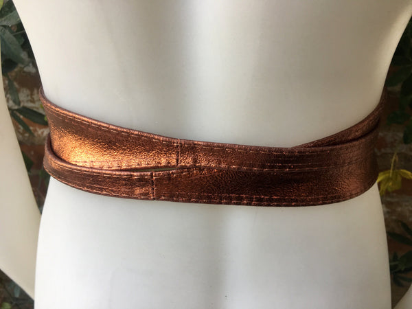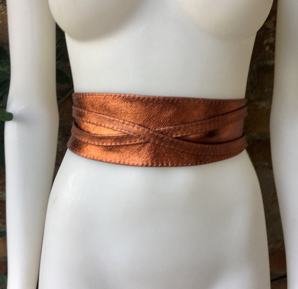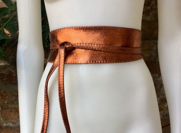 Copper color OBI BELT in genuine leather. Wrap belt in soft COPPER shine leather. Leather SASH . Genuine leather waistbelt. Wraparound boho belt.Metallic wraparound belt in soft leather