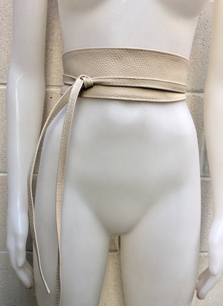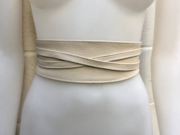 Cream color OBI BELT in genuine leather. Very light beige wrap belt in genuine leather. Wide soft belt. Waist belt in soft natural letather. Boho wraparound sash in creamy white