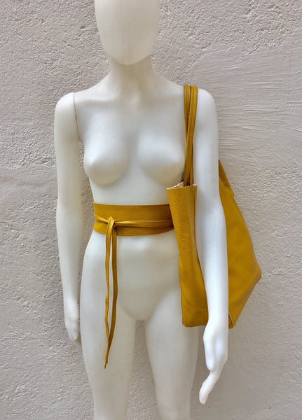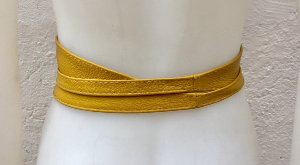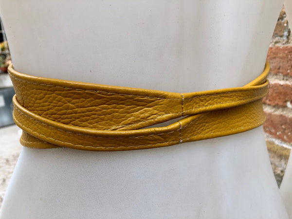 Mustard yellow OBI BELT in genuine leather. Waist belt in soft natural leather. Mustard color belt. Yellow leather waist cinch belt