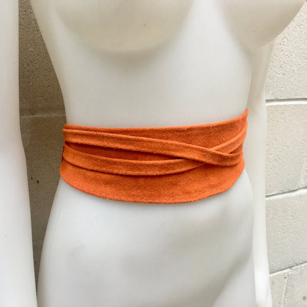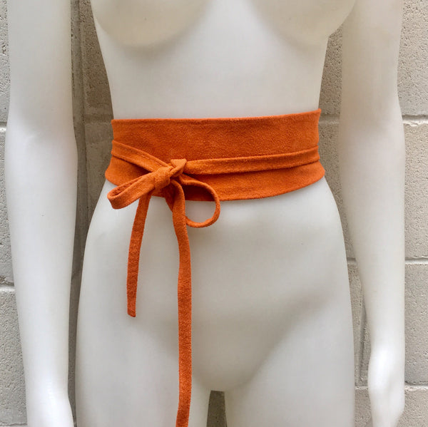 ORANGE soft OBI style belt. Wrap belt in genuine suede leather. Waistbelt in orange natural suede leather.