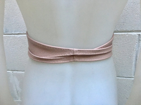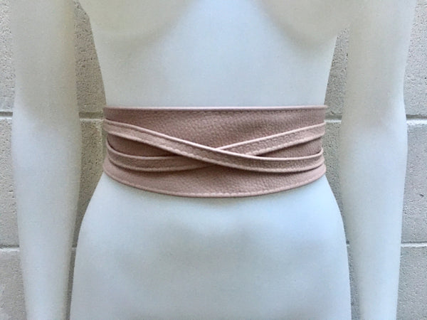Large enough to fit books, tablets and medium sized laptops. The set includes a genuine leather wraparound belt in the same soft pink shade.