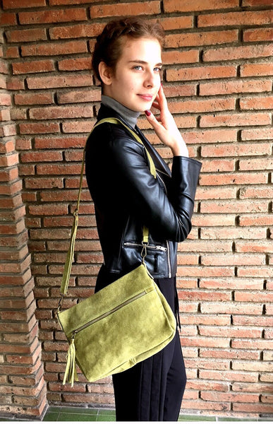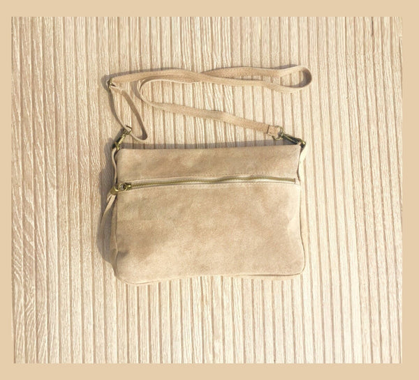 Cross body suede bag in BEIGE with tassel. Natural GENUINE leather. Festival cross over bag in soft suede creamy beige leather. Messenger or shoulder bag. Closed by a zipper at the upper part.