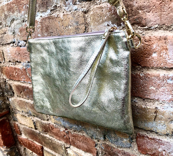 Small leather bag in GOLD .Cross body bag, shoulder bag or wristlet in GENUINE leather. Gold bag with adjustable strap. Gold leather purse