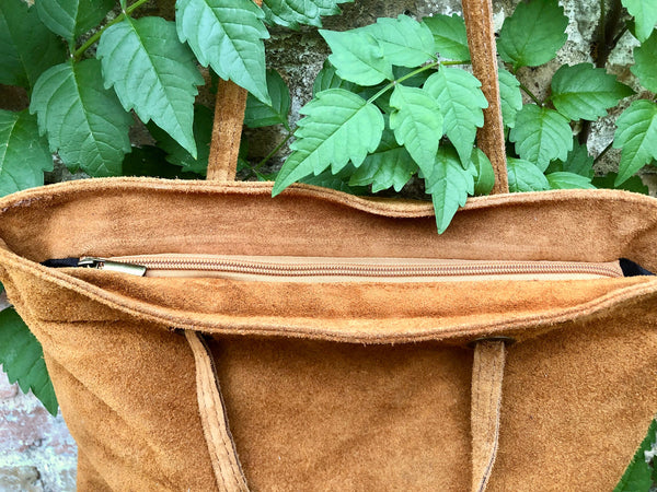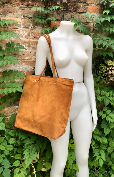 Light camel brown suede bag. Tote suede leather bag in rusty brown. Natural genuine suede leather. Brown color large shopper bag. Carry all bag. Closed with a zipper, with shoulder straps You can easily carry your books, laptop or tablet in one nice bag , made of soft suede leather