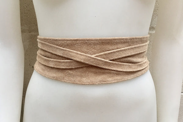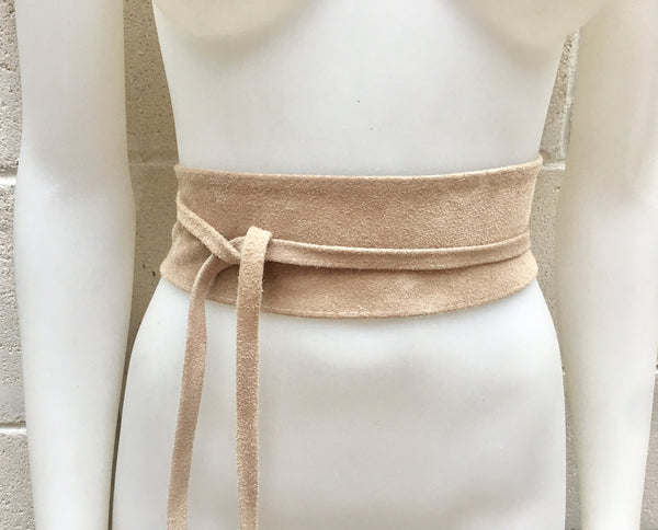 BEIGE OBI GÜRTEL aus natürlichem Wildleder. Taillengürtel aus echtem Leder. Beige Wildledergürtel.