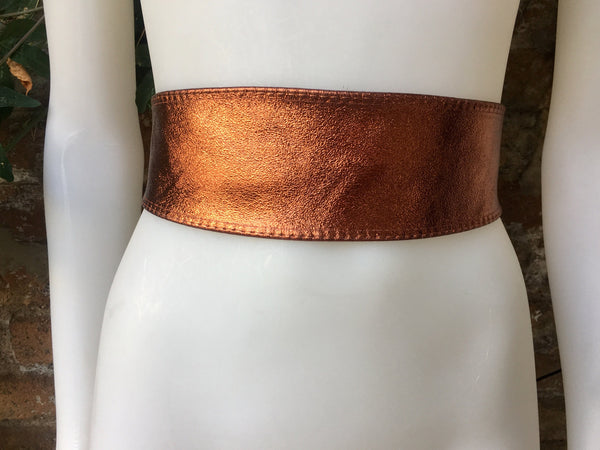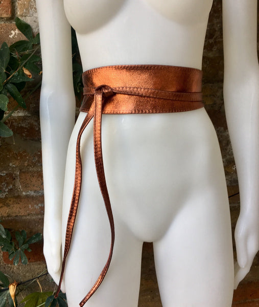Copper color OBI BELT in genuine leather. Wrap belt in soft COPPER shine leather. Leather SASH . Genuine leather waistbelt. Wraparound boho belt.Metallic wraparound belt in soft leather
