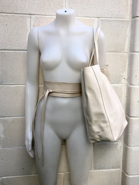 Cream color OBI BELT in genuine leather. Very light beige wrap belt in genuine leather. Wide soft belt. Waist belt in soft natural letather. Boho wraparound sash in creamy white