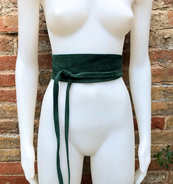 Waistbelt in soft DARK GREEN suede. Green suede OBI belt. Wrap belt in natural soft suede. Wraparound green sash. Genuine leather DARK GREEN boho belt.