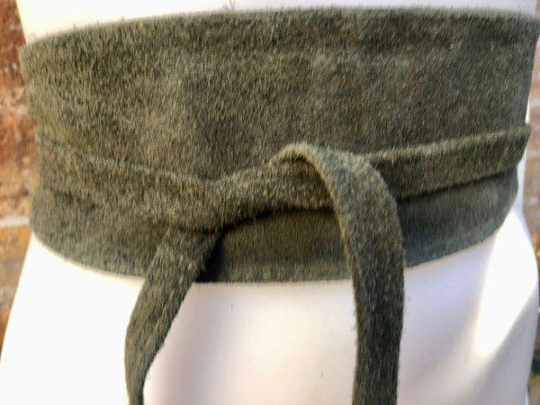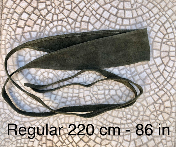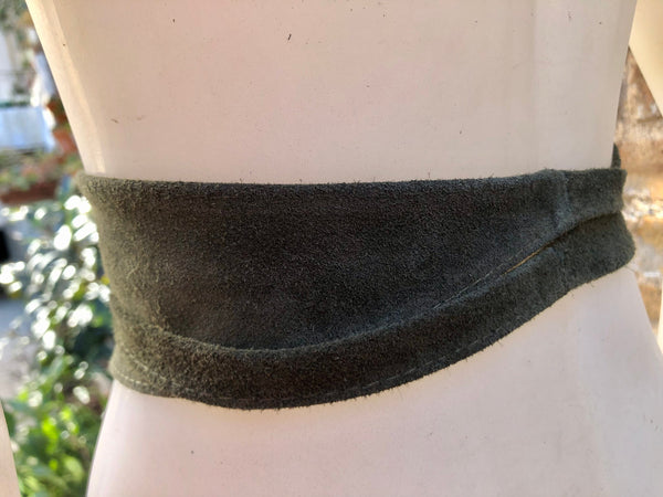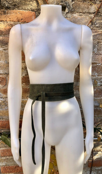 Dark GREEN suede OBI belt. Wrap belt in natural soft suede. Green waist belt, Wraparound green belt . Genuine leather boho belt.