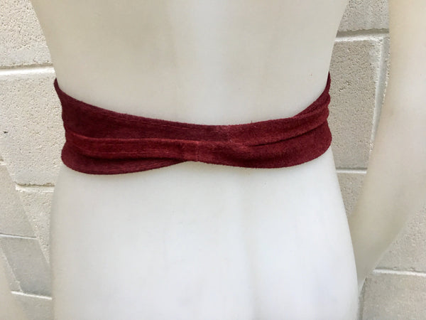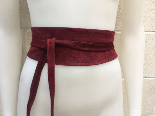 Dark RED suede OBI belt. Wrap belt in natural soft suede.BURGUNDY genuine leather waist cinch belt. Wine red sash, boho wraparound belt
