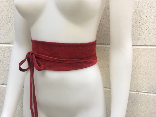 Dark RED suede OBI belt. Wrap belt in natural soft suede. Waist belt in BURGUNDY leather, Wine red sash, boho wraparound belt in dark red.