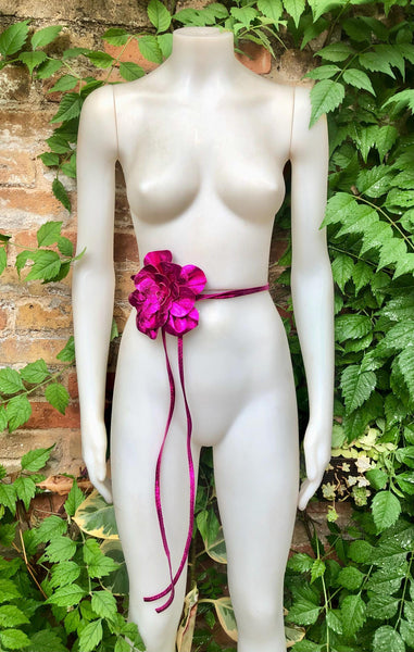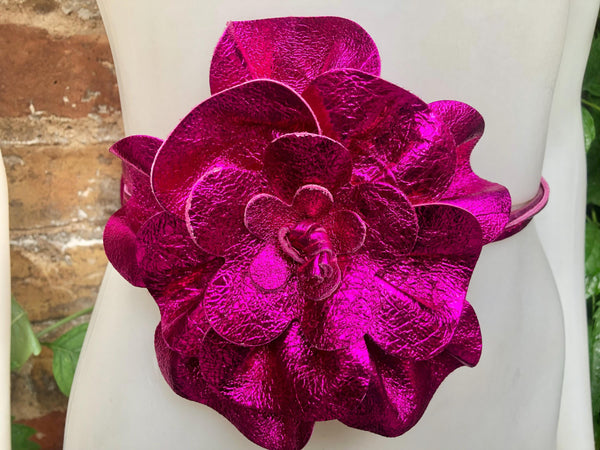 Flower leather belt in metallic HOT PINK . Made with soft genuine leather. Metallic FUCHSIA pink wrap belt.