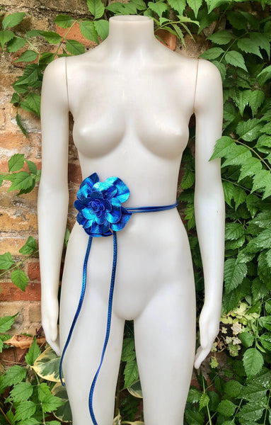 Flower leather belt in metallic ROYAL BLUE . Made with soft genuine leather. Metallic COBALT BLUE wrap belt.