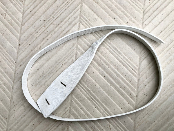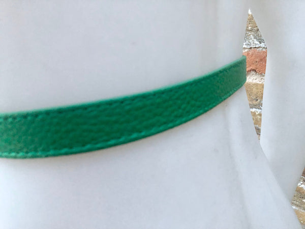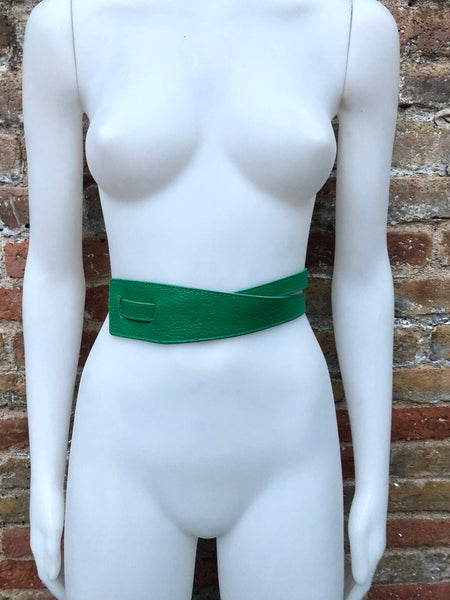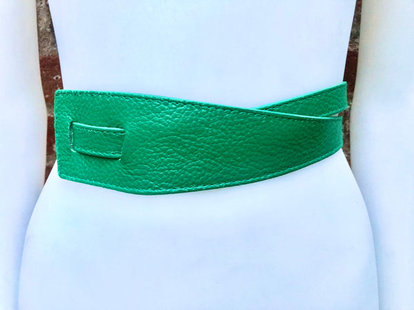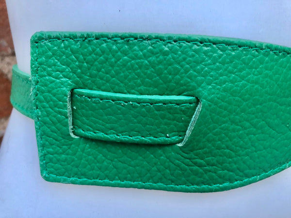 NEW STYLE. Green OBI BELT in genuine leather. Waist belt in soft natural leather. White 80s style belt. One side "passes through" the other through the 2 eyelets and then can be either hidden behind or passed through again at the front, please see pictures!