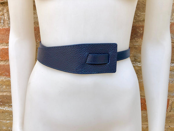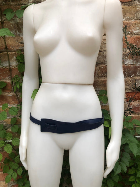 NEW STYLE. Dark blue OBI BELT in genuine leather. Waist belt in soft natural leather. Navy blue 80s style belt. One side "passes through" the other through the 2 eyelets and then can be either hidden behind or passed through again at the front, please see pictures!