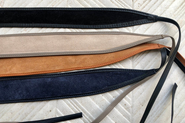 Green belt in genuine leather. Narrower style Wrap belt in a beautiful color in between blue and green. Waist belt in soft natural leather. Wraparound dress belt.