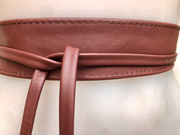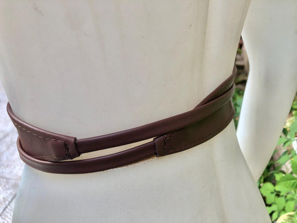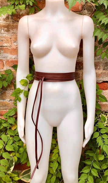 Obi belt in soft leather. Narrow style. Wrap belt in BROWN. Maroon brown wraparound waist belt in genuine leather. Boho brown dress belt.