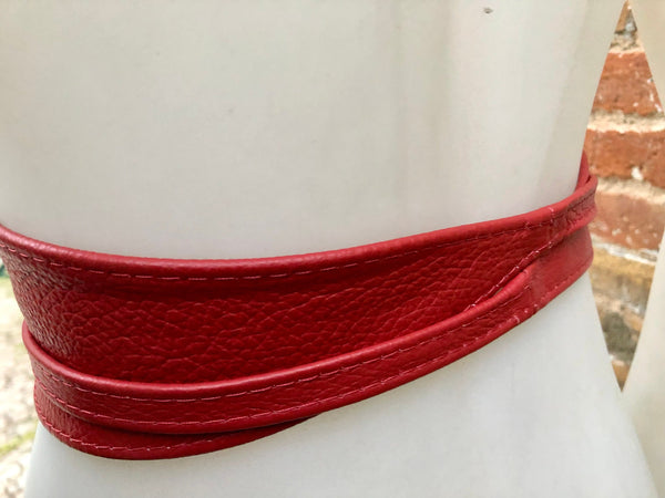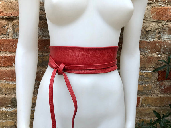 RED OBI BELT in genuine leather. Waist belt in soft natural leather. RED leather belt. Dress or wraparound leather belt. The color is a beautiful "terracotta" warm shade of red.