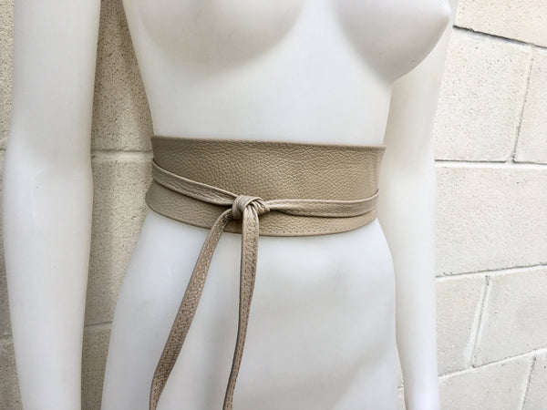 Beige OBI BELT in genuine leather. Wrap belt in genuine leather. Wide soft belt. Waist belt in soft natural letather. Boho wraparound sash