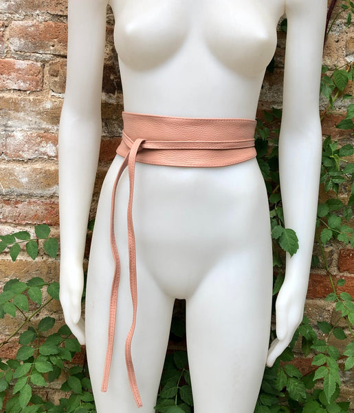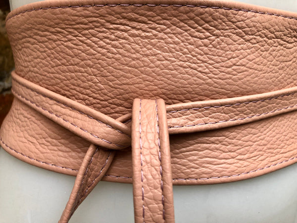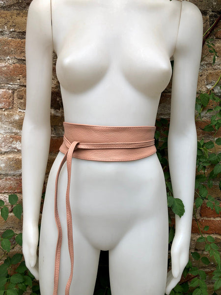Pink OBI BELT in genuine leather. Powder pink wrap belt in genuine leather. Wide soft belt. Waist belt in soft natural letather. Boho wraparound belt