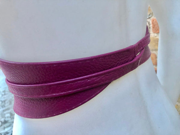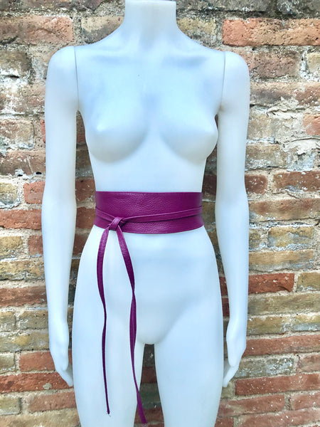Plum color OBI BELT in genuine leather. A beautiful shade between purple and burgundy. Wrap belt in genuine leather. Wide soft belt. Waist belt in soft natural letather. Boho wraparound belt
