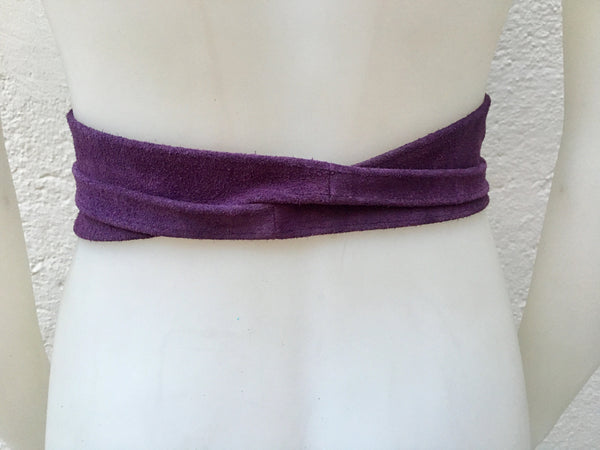 Dark purple wrap belt in natural soft suede leather. Wide waist belt in soft natural suede leather. Purple suede dress/overall belt
