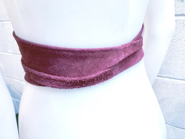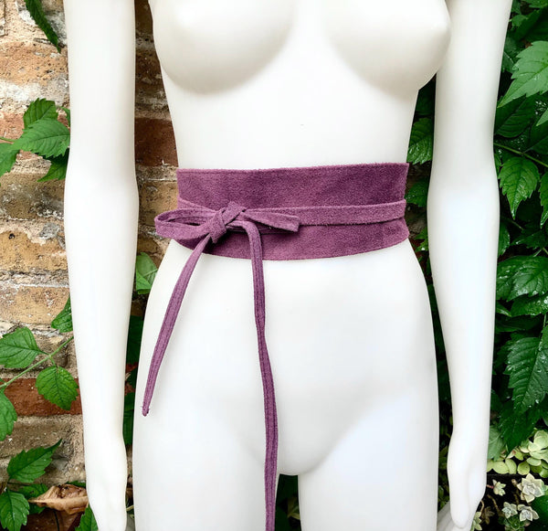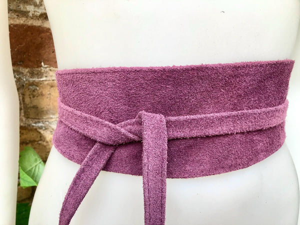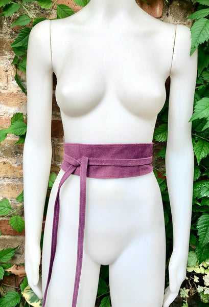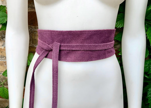 Raspberry purple - pink wrap belt in natural genuine suede leather. Purple obi belt. Waist belt in soft suede. Purple suede belt.