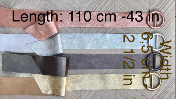 The belt is 110 cm - 43 in long and 6,5 cm, 2 1/2 in wide