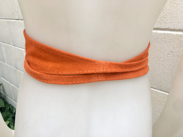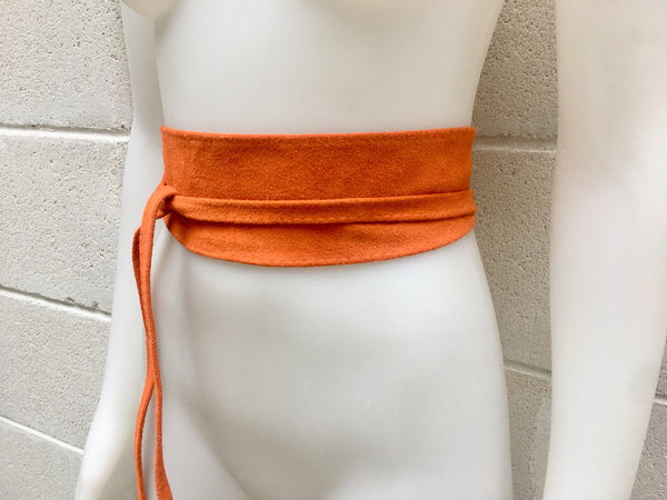 ORANGE soft OBI style belt. Wrap belt in genuine suede leather. Waistbelt in orange natural suede leather.