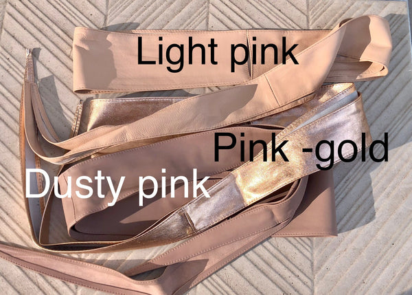 Dusty pink OBI BELT in natural soft genuine leather. WIDER MODEL wrap belt. Genuine leather pink waist belt.