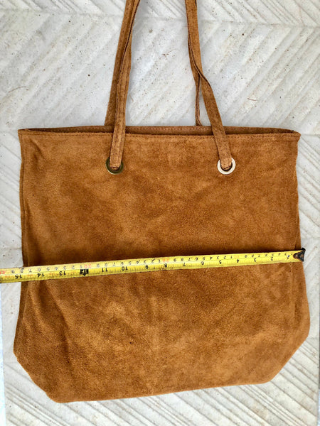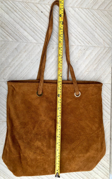 The inside of the bag is lined in a strong nylon fabric. We added a zipper closed pocket. Made with soft suede leather