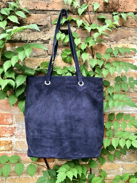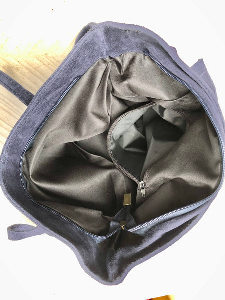 Navy blue suede bag. Dark blue suede leather bag. Natural genuine suede leather. Navy large shopper bag. Carry all bag. Closed with a zipper, with shoulder straps You can easily carry your books, laptop or tablet in one nice bag , made of soft suede leather