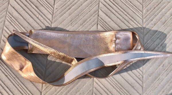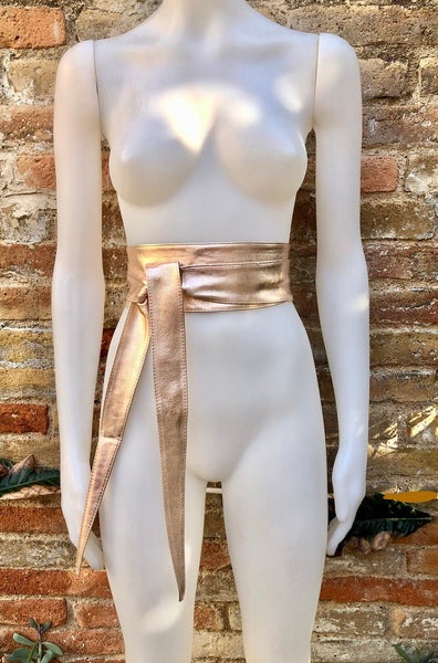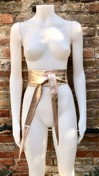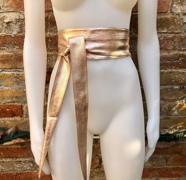 Pink - gold OBI BELT in natural soft genuine leather. WIDER MODEL wrap belt. Genuine leather waist belt in a metallic effect SALMON PINK color