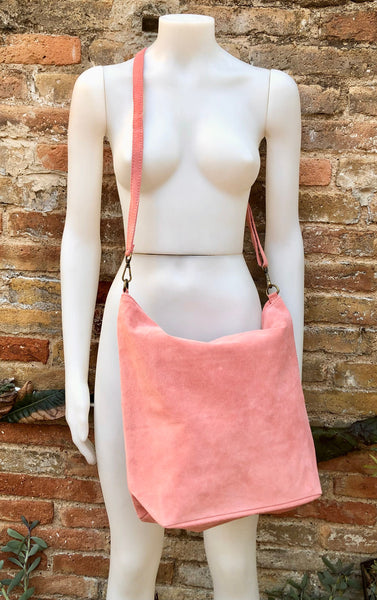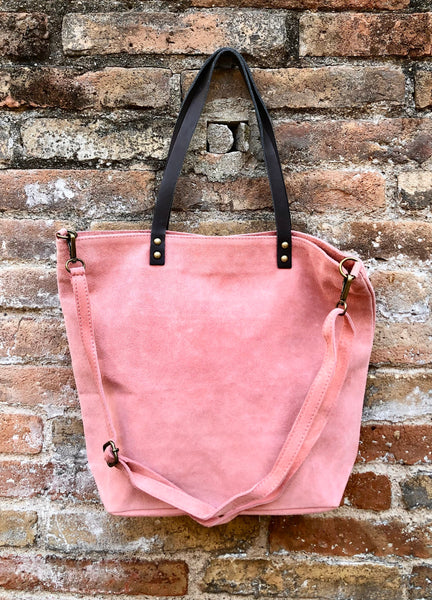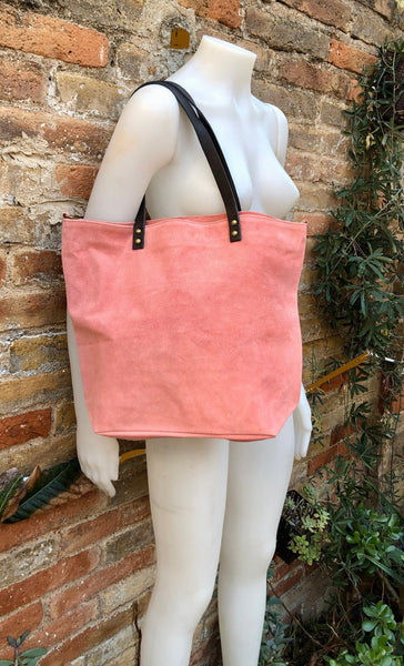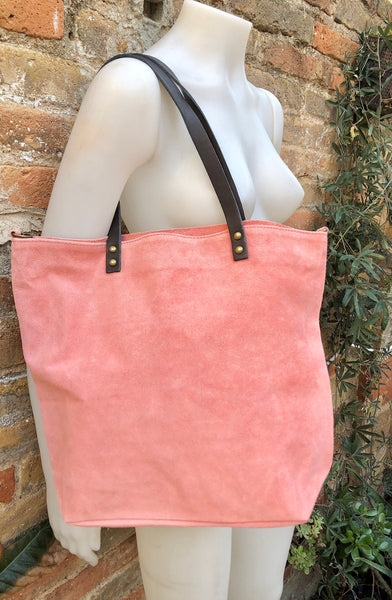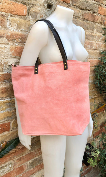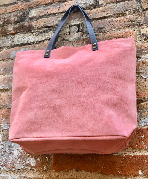 PINK Large TOTE leather bag. Soft suede, genuine leather bag. Pink suede bag. Laptop bag in suede. Large cross body bag. PINK suede purse