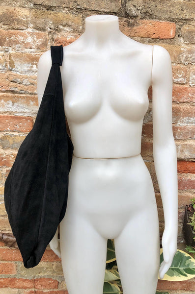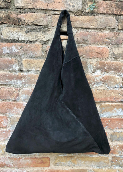 Slouch leather bag in BLACK suede . Large shoulder bag in genuine leather. Suede origami bag . Black suede shopper bag. Black leather purse