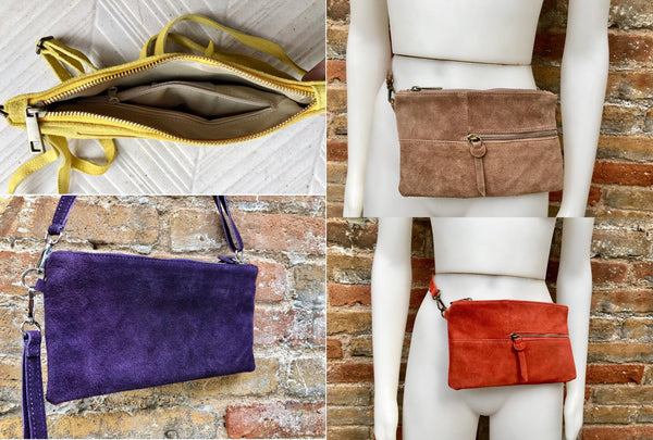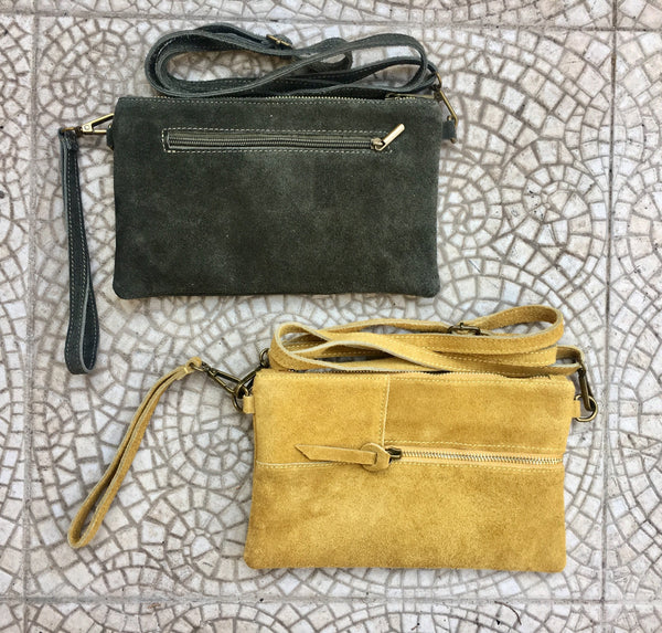 Suede leather bag in DARK GREEN . Natural, soft genuine suede leather. Small cross body bag in suede. BOHO, Crossbody bag.