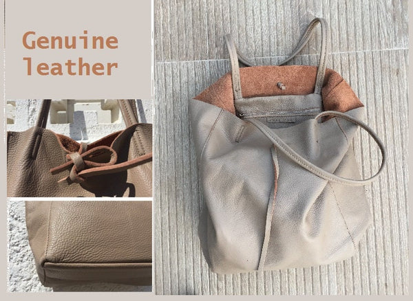 Large tote leather bag in GRAY. Shopper bag. Gray color natural GENUINE leather. Large enough for books or a laptop, tablet, cosmetics bag etc.
