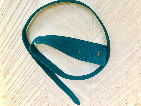 NEW STYLE. Teal blue-green OBI BELT in genuine leather. Waist belt in soft natural leather. Teal blue - green color 80s style belt. One side "passes through" the other through the 2 eyelets and then can be either hidden behind or passed through again at the front, please see pictures!