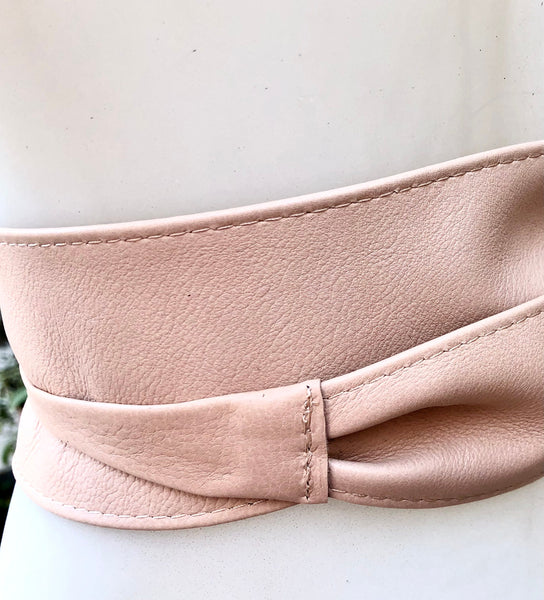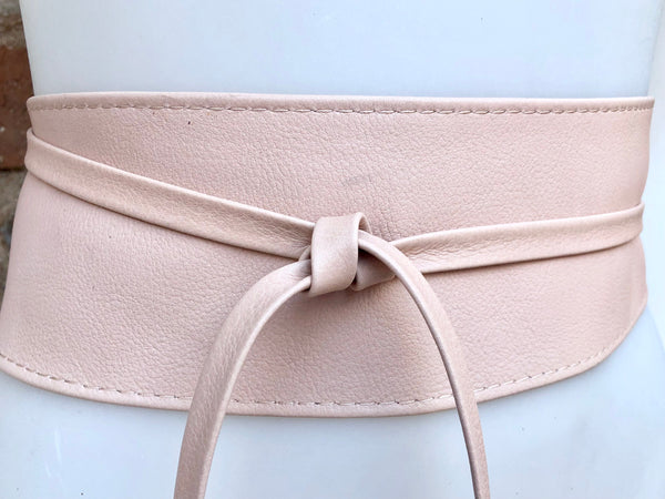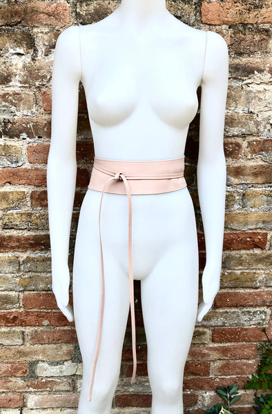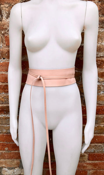 Light peach pink OBI BELT in genuine leather. LONGER option. Wrap belt in soft pink . Waist belt in soft natural leather.