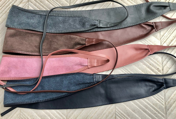 Our genuine leather and soft suede obi belts in different colors: