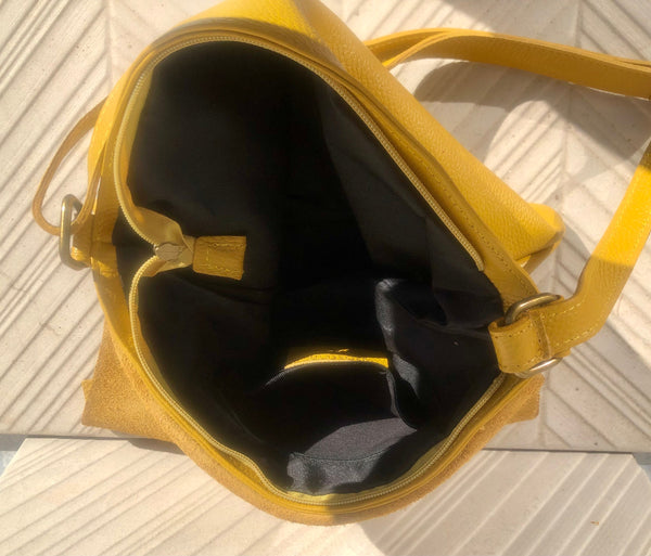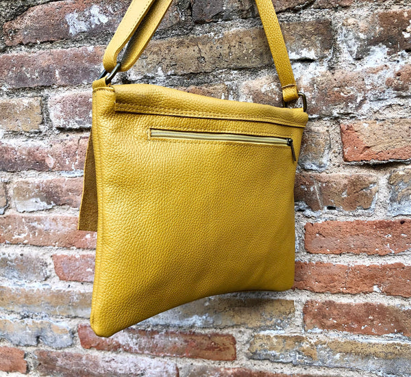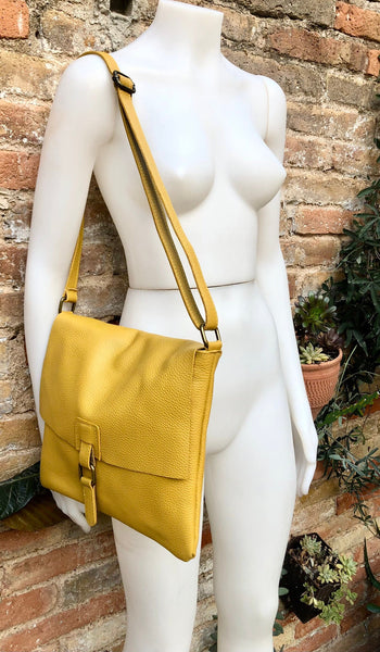 Cross body leather bag in mustard YELLOW . Natural genuine leather. Cross over, Messenger bag,large enough for most tablets and books. Boho shoulder bag.