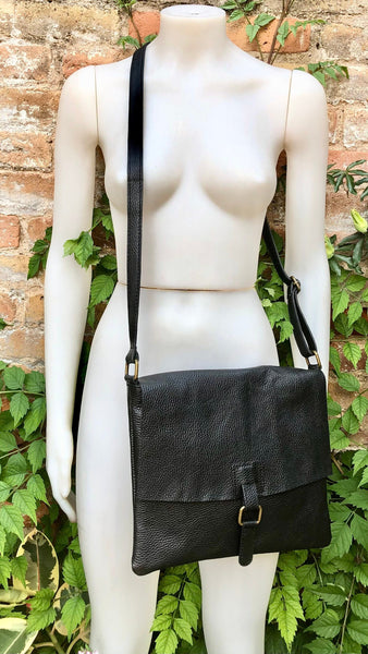 Cross body leather bag in Black. Natural genuine leather. Cross over, Messenger bag,large enough for most tablets and books. Boho shoulder bag.