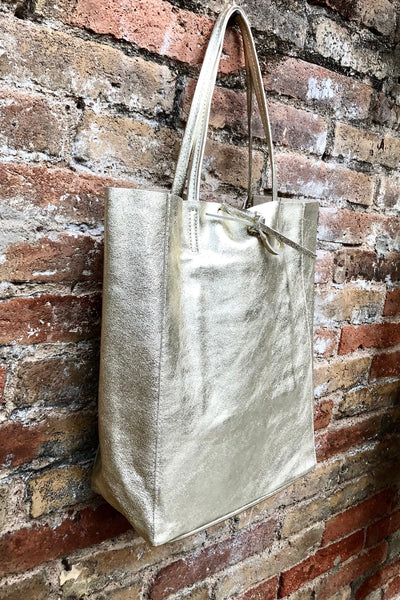 Large tote leather bag in GOLD with matching belt. Natural GENUINE leather bag and belt set.