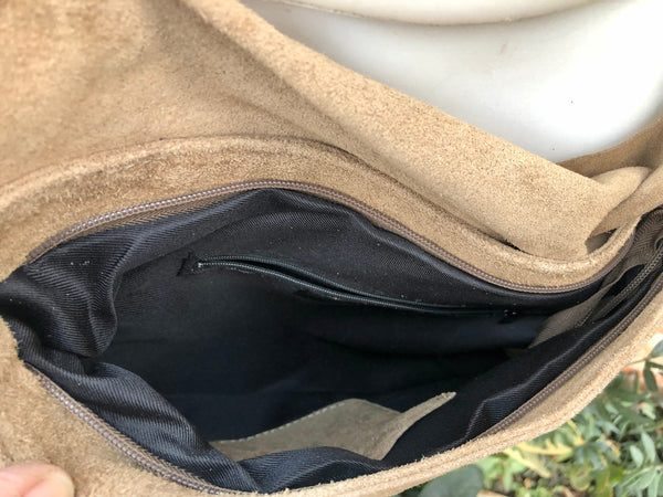Bohemian leather bag in TAUPE BEIGE- BROWN . GENUINE leather. Soft suede leather cross body or shoulder bag.