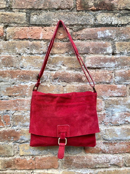 Boho cross body suede bag in RED . GENUINE leather. Soft suede leather cross body or shoulder bag.