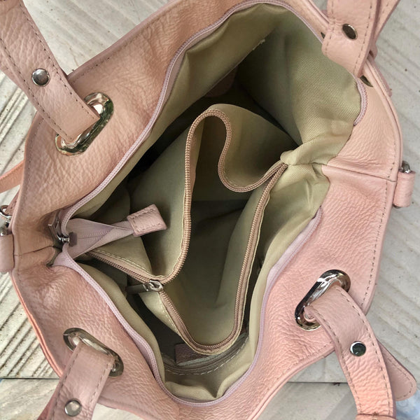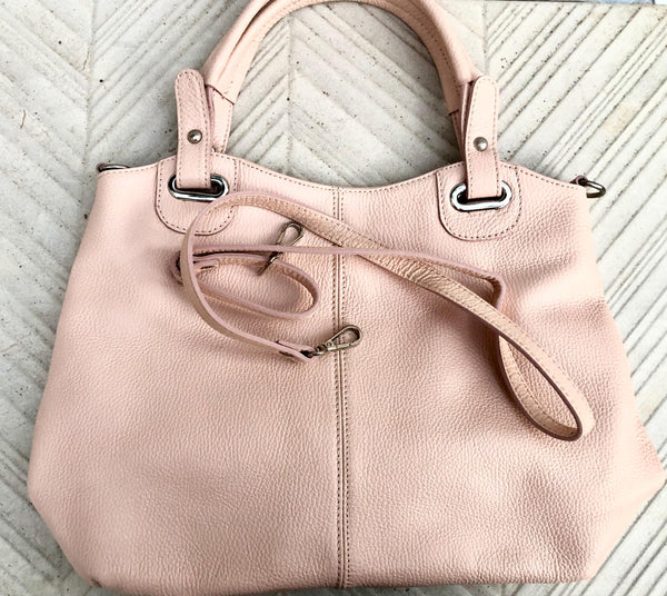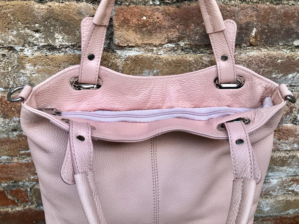 LIGHT PINK genuine leather bag. Hand / shoulder / crossbody bag. Removable longer adjustable strap. Pink shopper bag. Pink leather purse